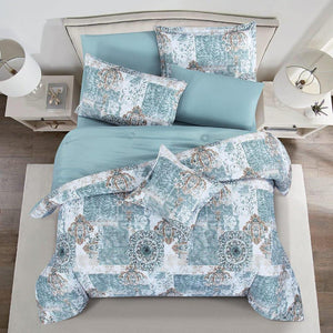 مفرش صيفي مزدوج وجهين ٧ قطع - اوركا -ابيض - تركوازي