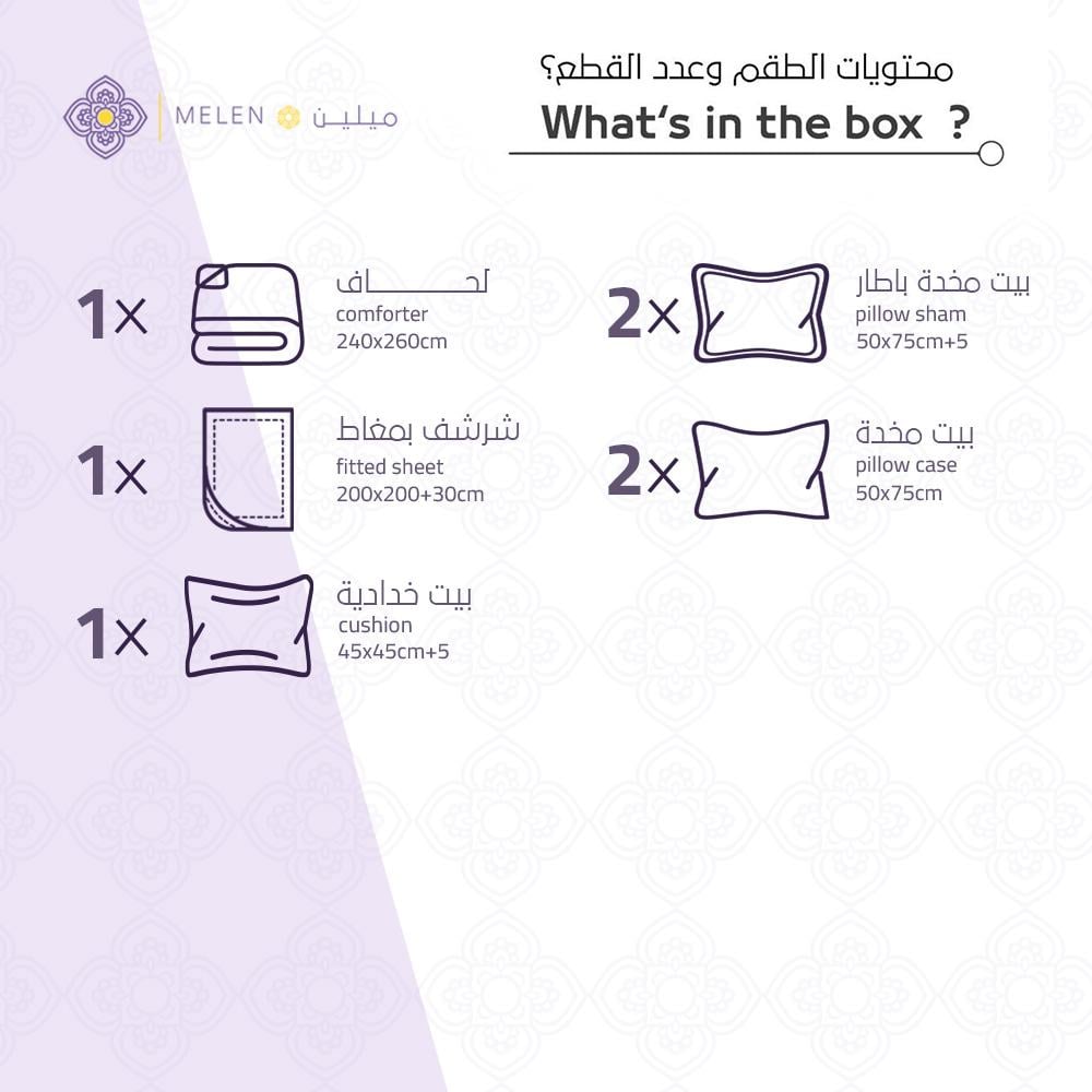 2-بيت مخدة : الطول 50 سم العرض 75 سم .