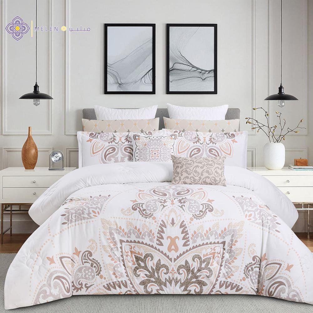 مفرش ريفيرا المميز بقماش مختار بعناية من ميلين يجمع بين النعومة و المتانة في آن واحد بحشوة ناعمة اختيرت بعناية يأتي مفرش ريفيرا بمجموعة مميزة من ١٠ قطع .