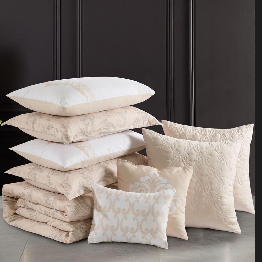 مفرش ريفيرا المميز بقماش مختار بعناية من ميلين يجمع بين النعومة و المتانة في آن واحد بحشوة ناعمة اختيرت بعناية يأتي مفرش ريفيرا بمجموعة مميزة من ١٠ قطع .