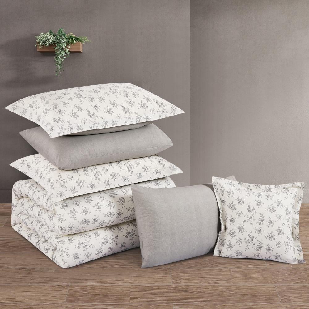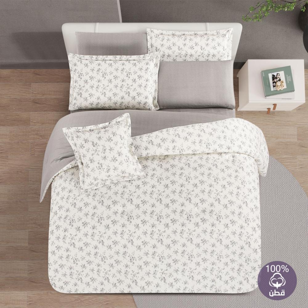 مفرش قطن صيفي مزدوج 8 قطع - زافيرا - اوف وايت - رصاصي