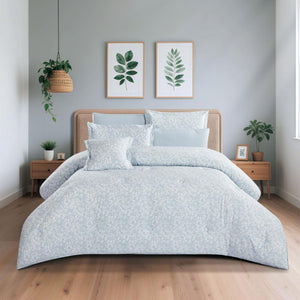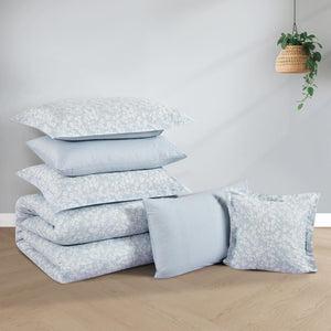 مفرش قطن صيفي مزدوج 8 قطع - زافيرا - سماوي - رصاصي فاتح