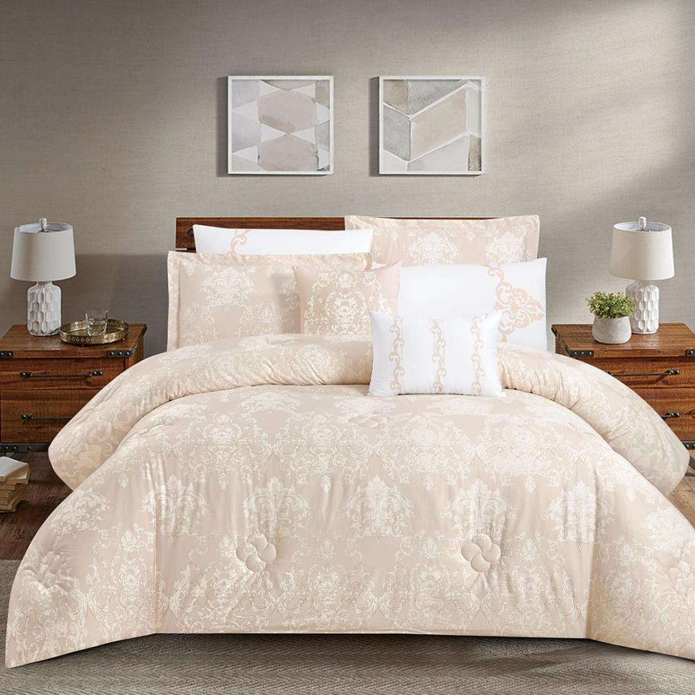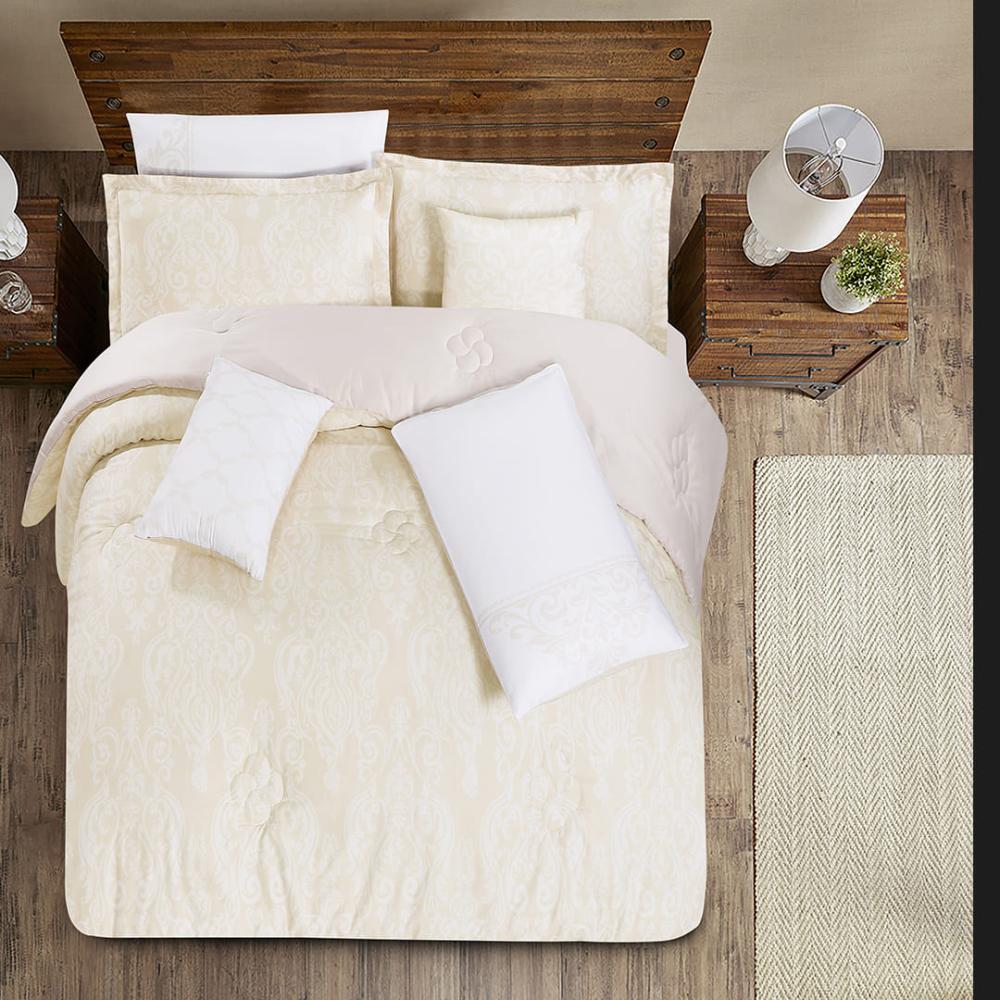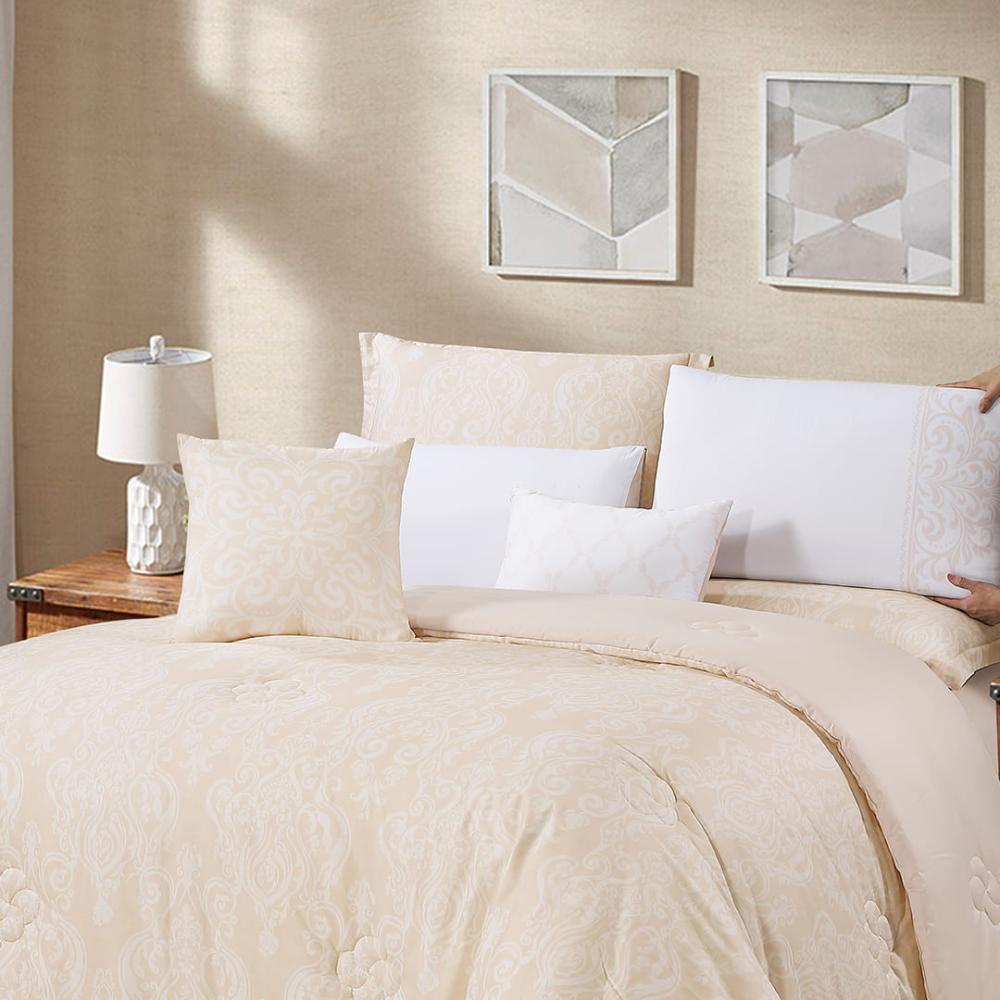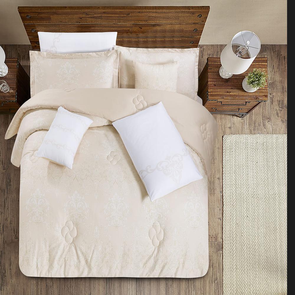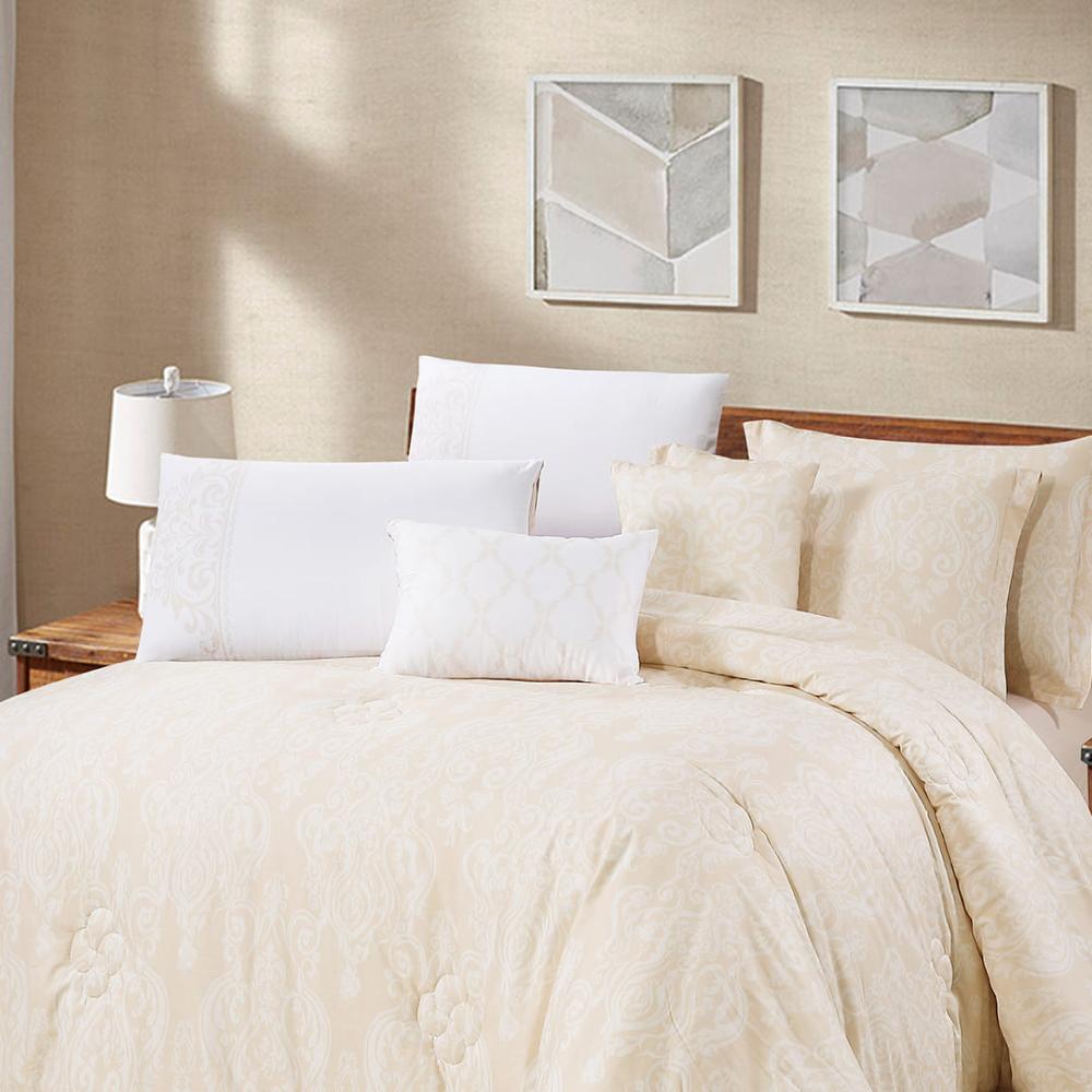 مفرش قطن عالي النعومة مزدوج 300 غرزه 8 قطع - ايليورا -كريمي