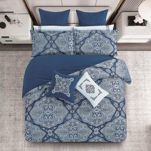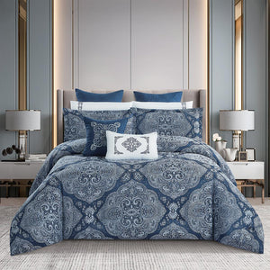 مفرش صيفي فاخر مزدوج جاكار مطرز 12 قطعة – لوتشيني Lucini– كحلي