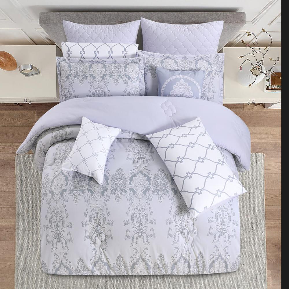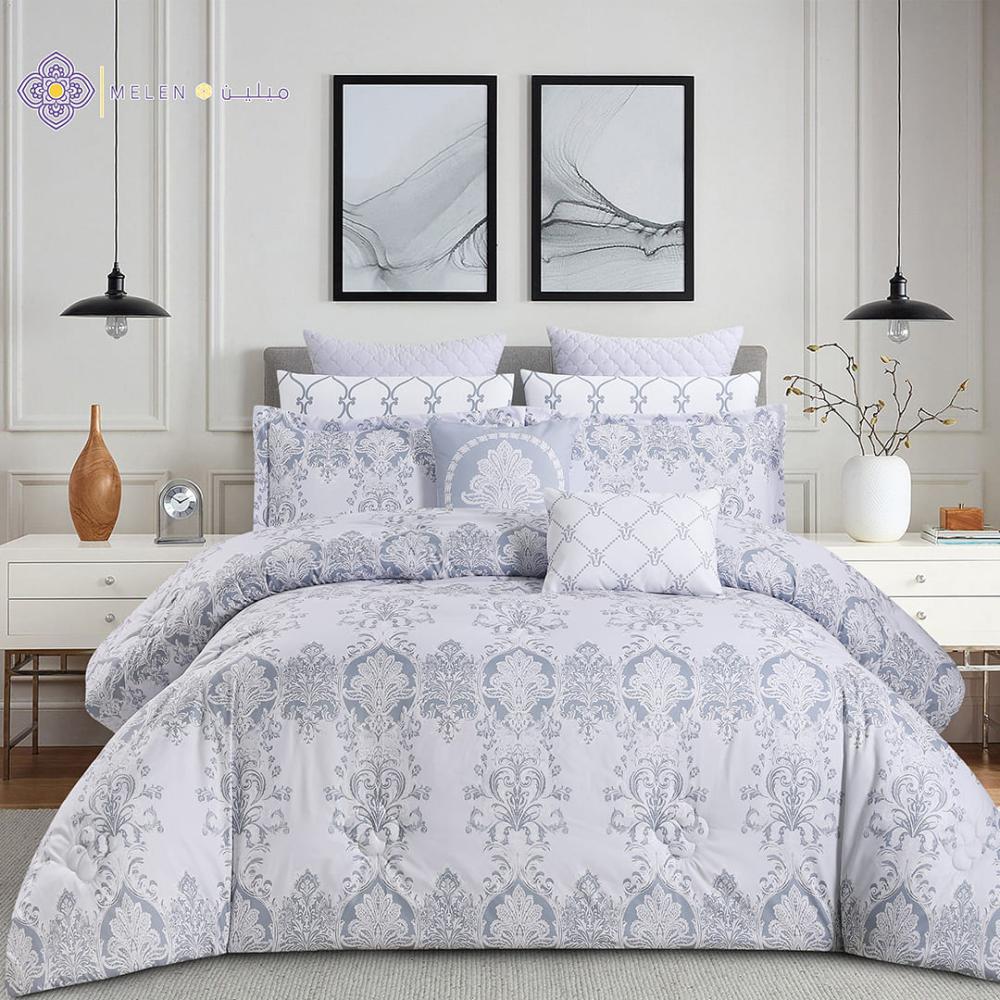 مفرش ريفيرا المميز بقماش مختار بعناية من ميلين يجمع بين النعومة و المتانة في آن واحد بحشوة ناعمة اختيرت بعناية يأتي مفرش ريفيرا بمجموعة مميزة من ١٠ قطع .