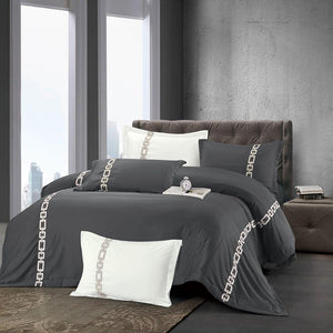 مفرش صيفي مفرد ونص مطرز بنظام فندقي 5 قطع - ايلارا -رمادي غامق