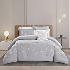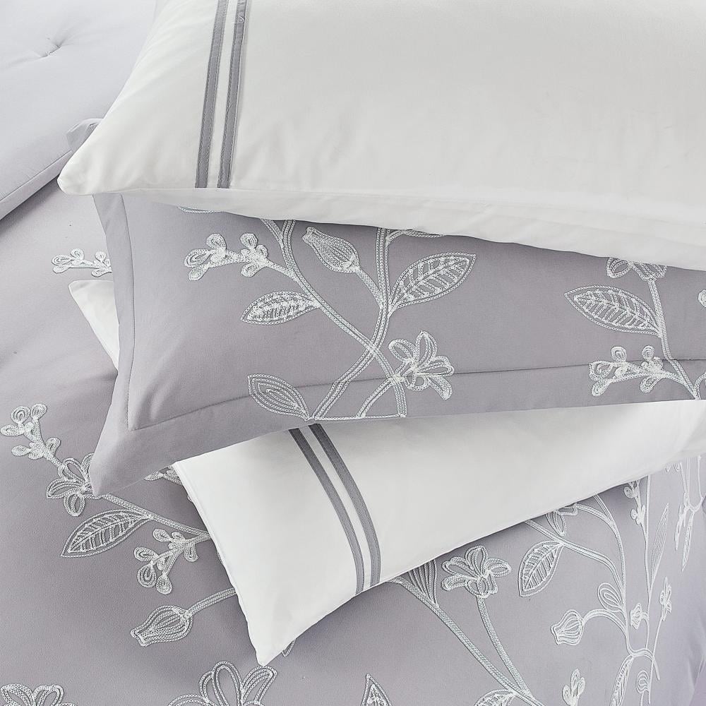 مفرش صيفي مفرد ونص مطرز فاخر 6 قطع - فيينزا - رمادي
