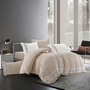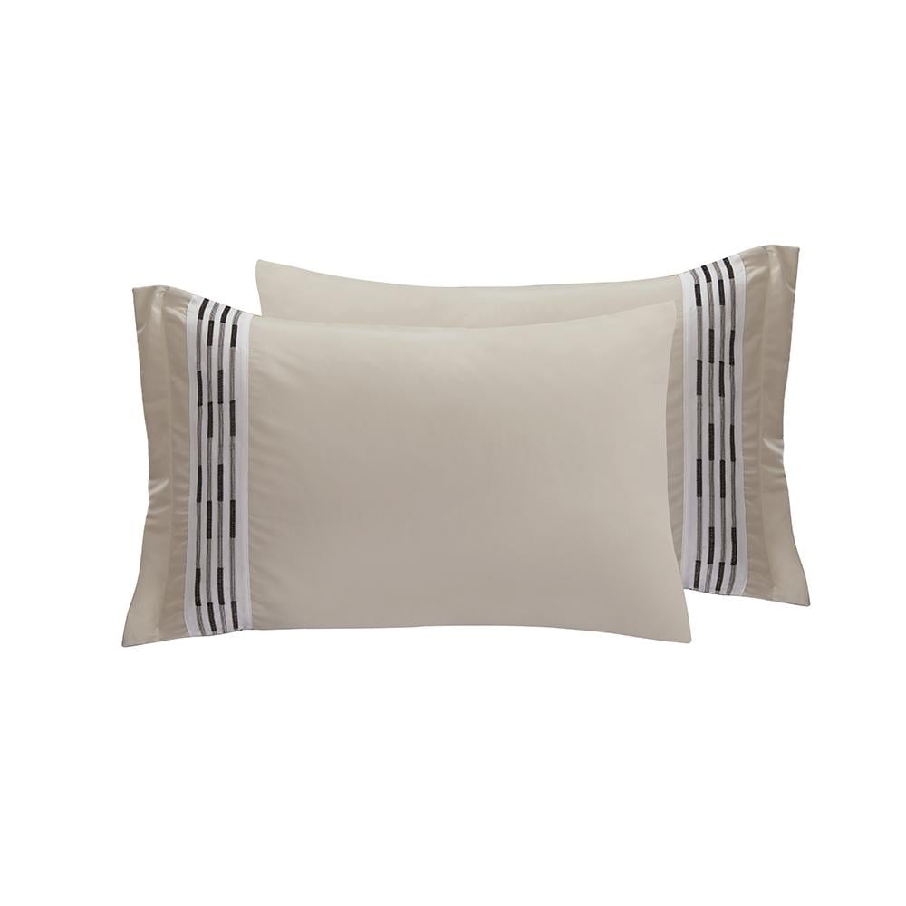 مفرش فندقي مزدوج مطرز 7 قطع - سكايلا - بيج فاتح