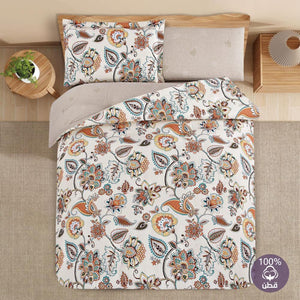 مفرش قطن صيفي مفرد ونص ٤ قطع - فاليريا - كريمي - بيج غامق