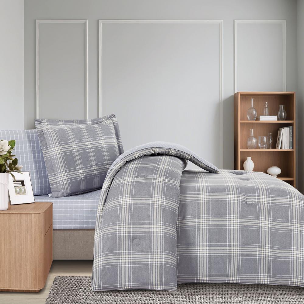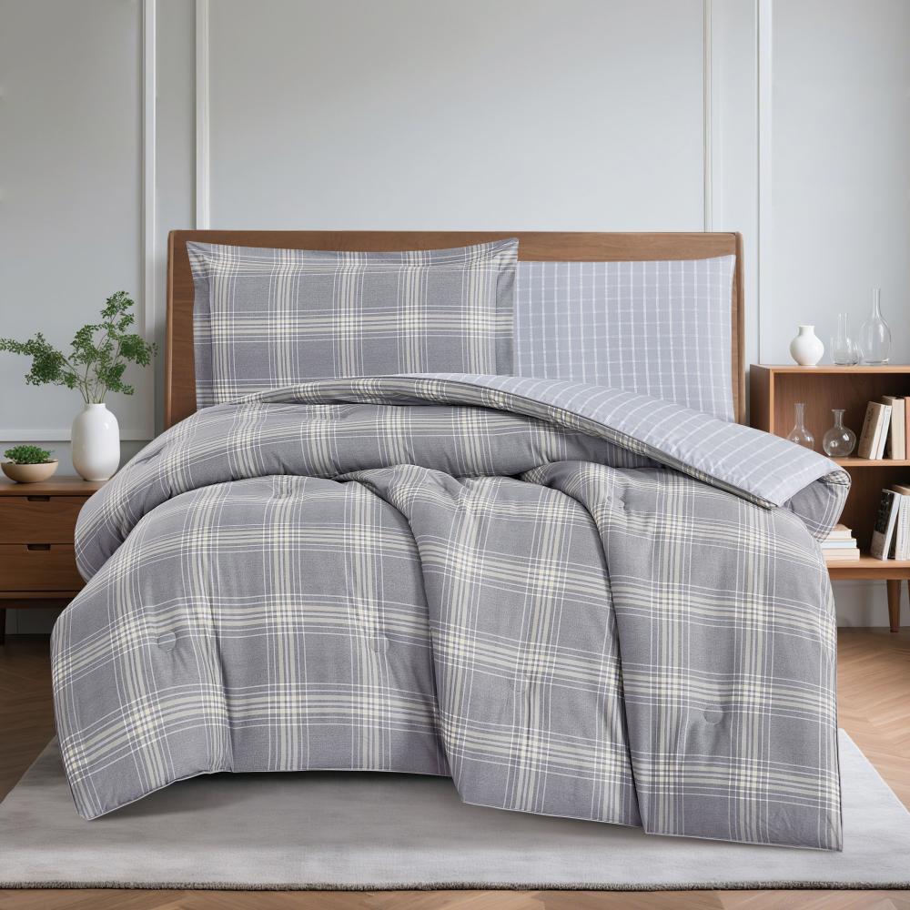 مفرش قطن صيفي مفرد ونص ٤ قطع - نولين -رمادي - رصاصي