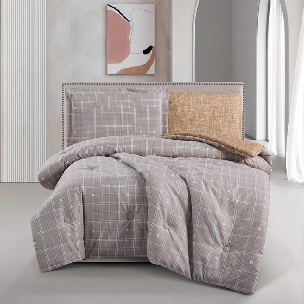 مفرش صيفي مفرد ونص حشوة مضغوطه 4 قطع - افروديت - ابيض - بيج فاتح