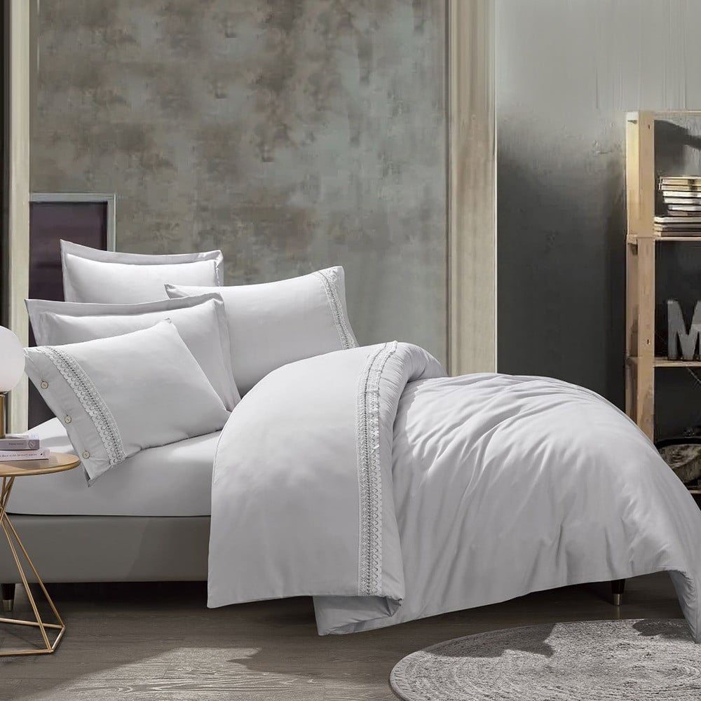 مفرش فندقي مزدوج حشوة متحركة 7 قطع - بورتو - رصاصي