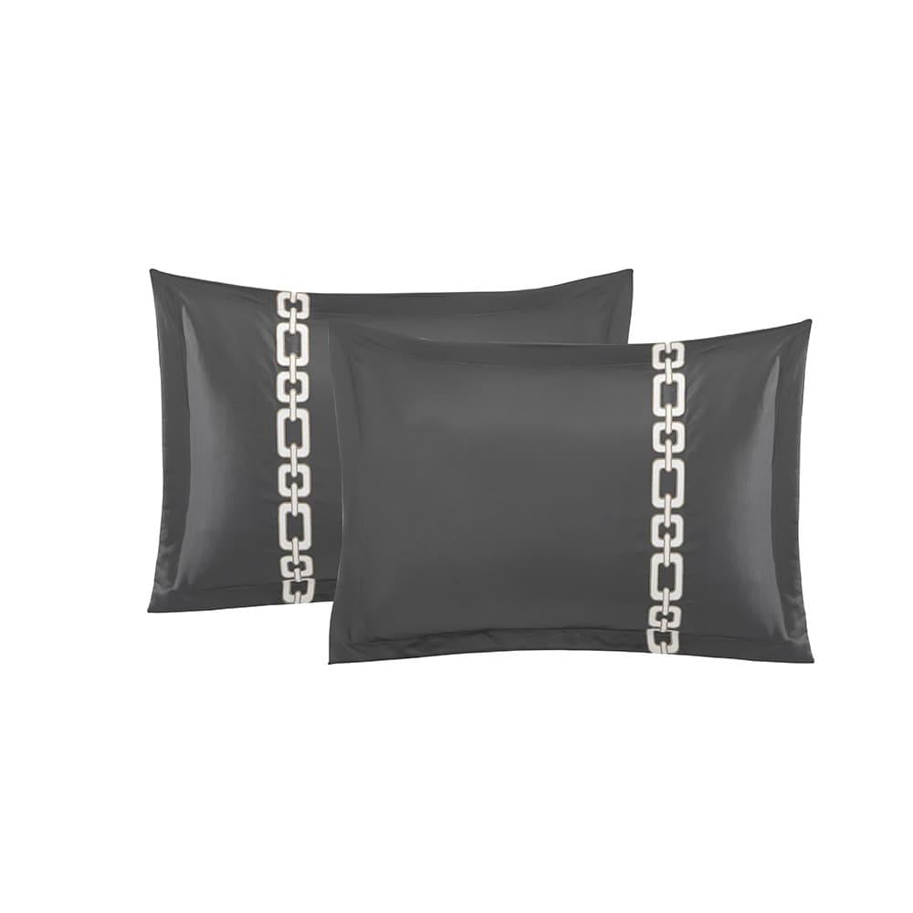 مفرش فندقي مزدوج مطرز 7 قطع - فاي - رمادي غامق