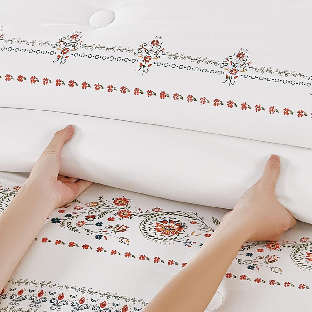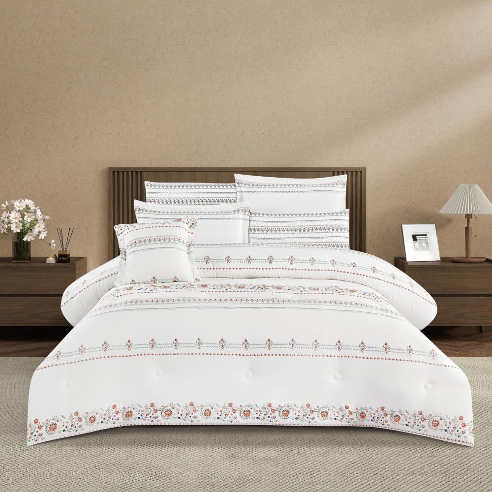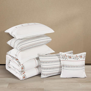 مفرش قطن صيفي مقاس كوين 8 قطع - نوفارين - اوف وايت