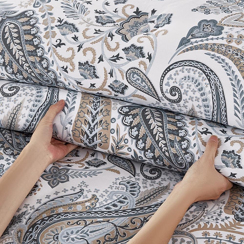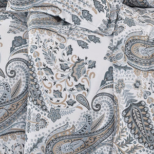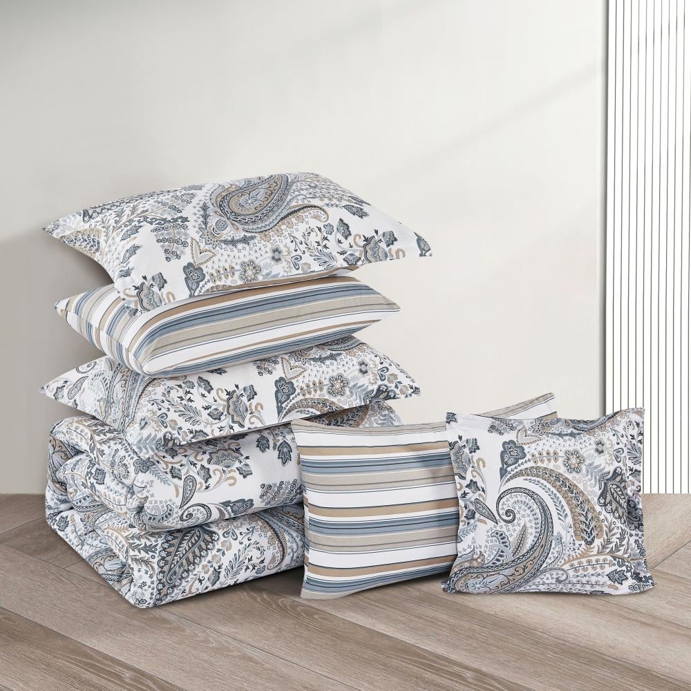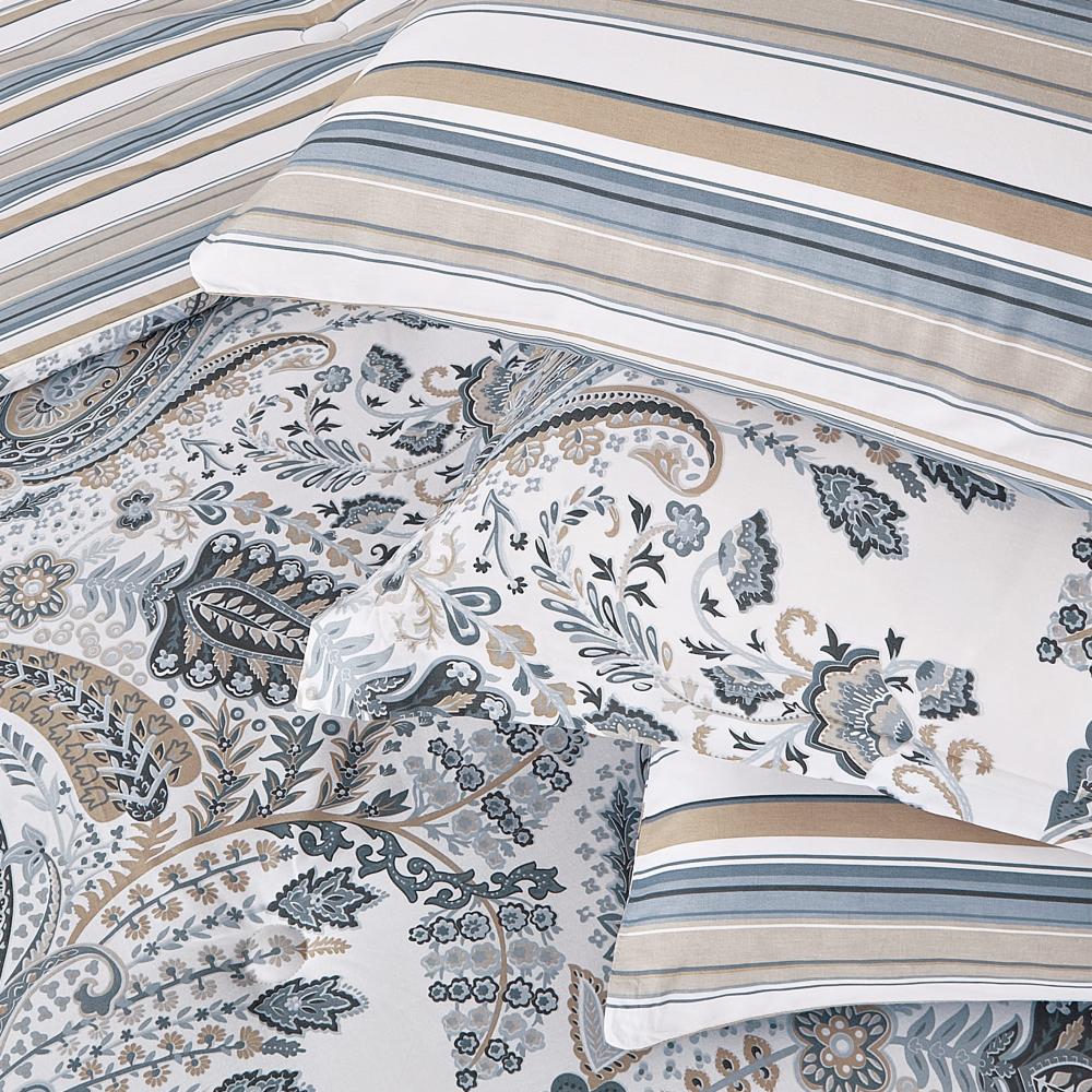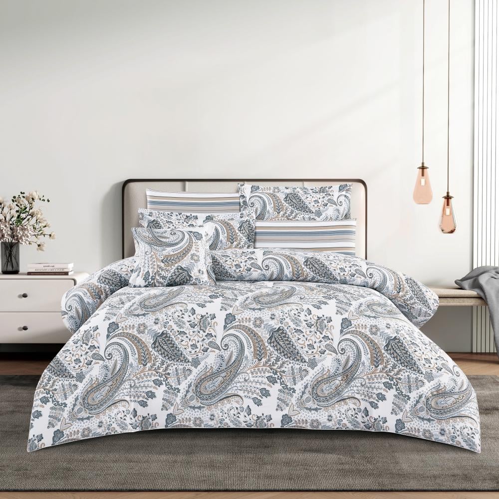 مفرش قطن صيفي مقاس كوين 8 قطع - نوفارين - اوف وايت - رصاصي فاتح