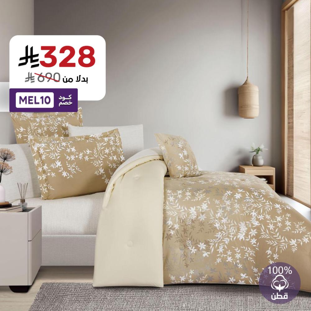 مفرش قطن صيفي مقاس كوين 8 قطع – نوفارين | برودة القطن وراحة متجددة