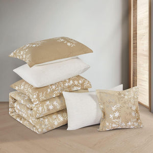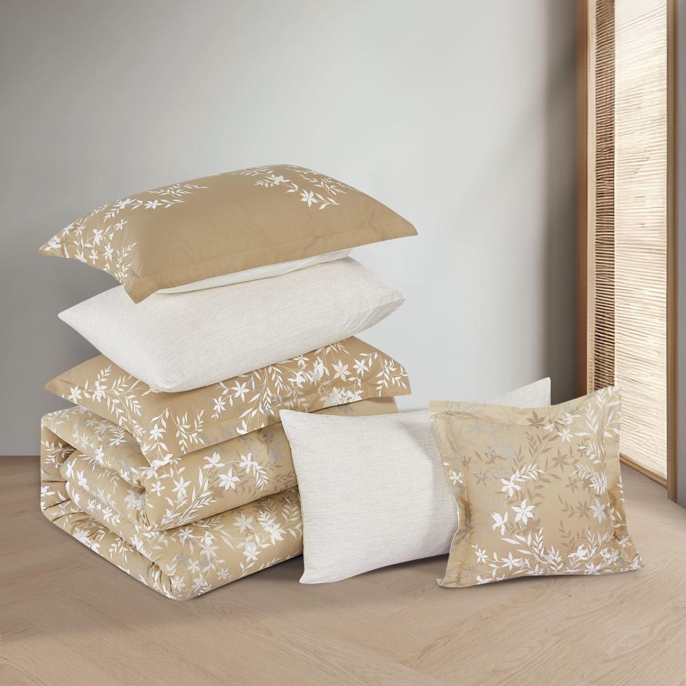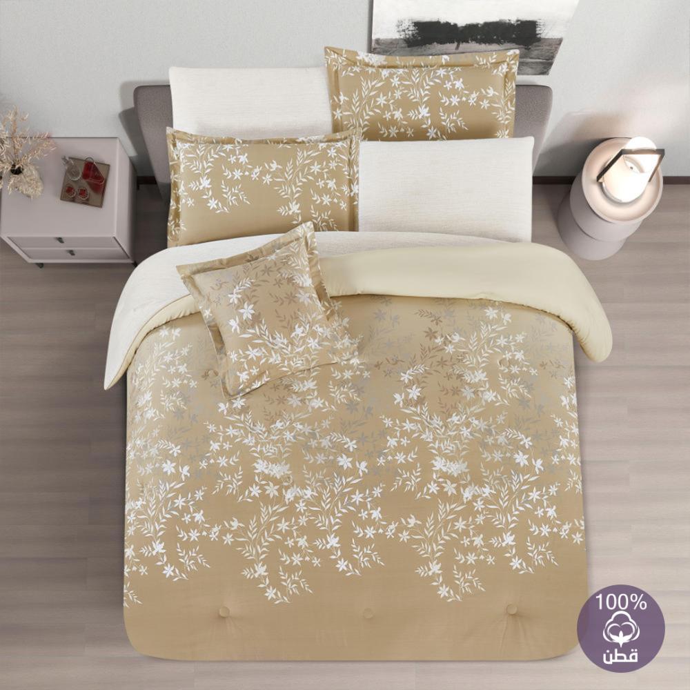 مفرش قطن صيفي مقاس كوين 8 قطع - نوفارين - بيج غامق - بيج فاتح - سكري