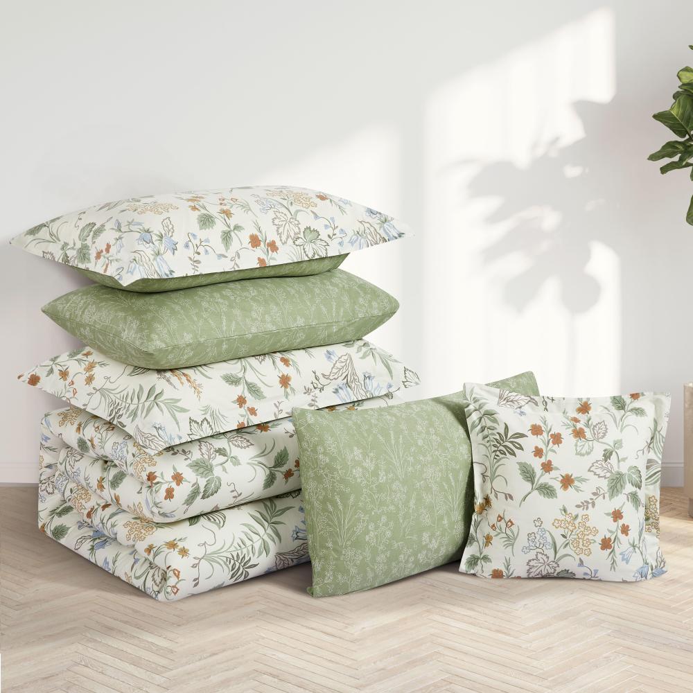 مفرش قطن صيفي مقاس كوين 8 قطع - نوفارين - سكري - اخضر