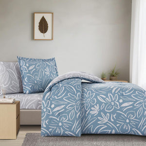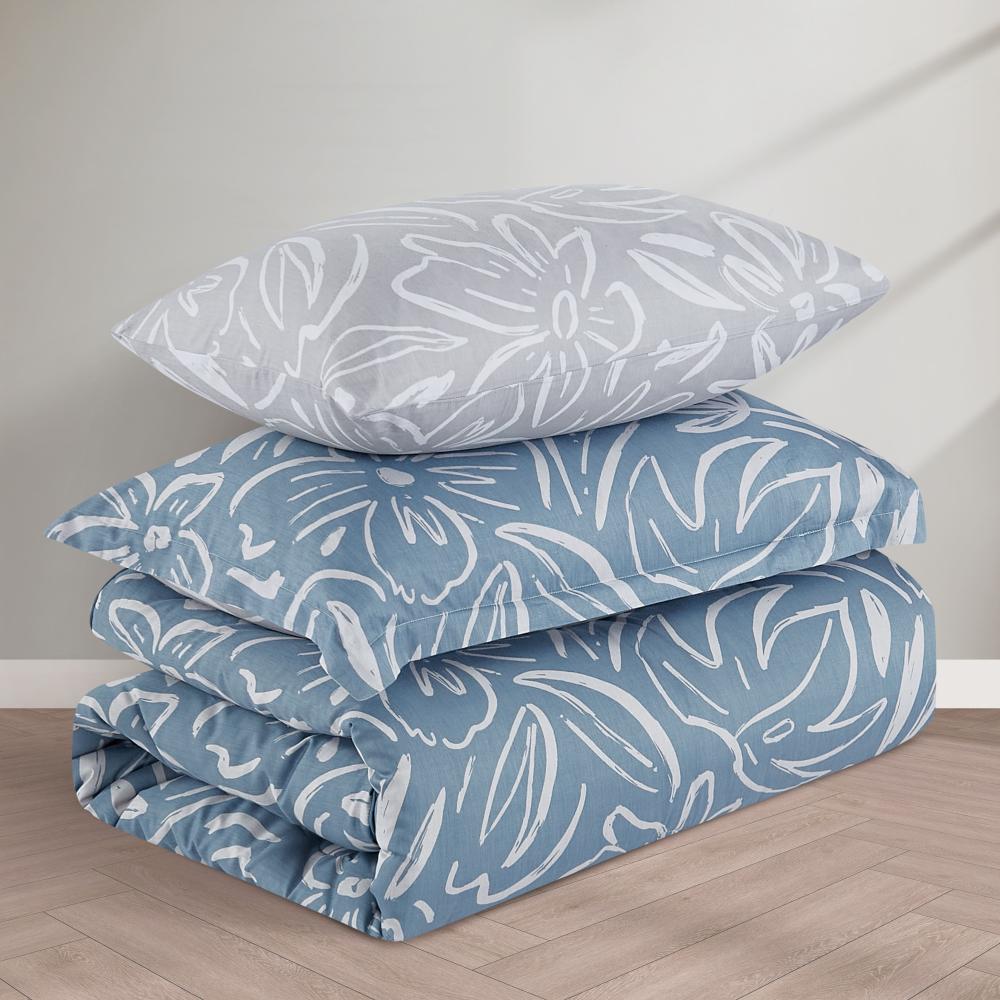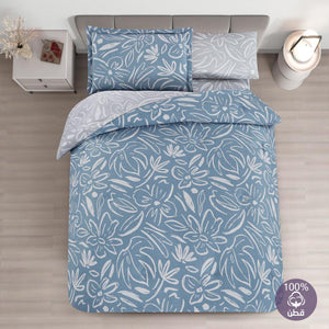 مفرش قطن صيفي مفرد ونص ٤ قطع - فاليريا - ازرق فاتح - رصاصي