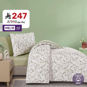 مفرش قطن صيفي مفرد ونص 4 قطع – نولين | نعومة القطن لراحة يومية دلّلي سريرك مع مفرش "نولين" القطني، المصمم بخامة طبيعية ناعمة وملائمة لأجواء الصيف. بفضل ملمسه المريح وجودته العالية، يمنحك تجربة نوم هادئة ويضيف لمسة من البساطة...