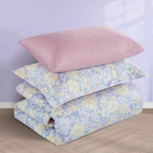 مفرش قطن صيفي مفرد ونص ٤ قطع - نولين -بنفسجي - زهري غامق