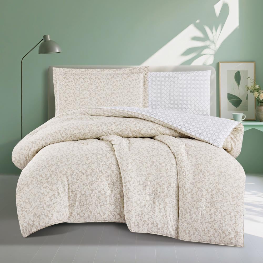 مفرش قطن صيفي مفرد ونص ٤ قطع - نولين - بيج - ابيض