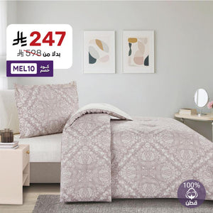 مفرش قطن صيفي مفرد ونص 4 قطع – نولين | نعومة القطن لراحة يومية دلّلي سريرك مع مفرش "نولين" القطني، المصمم بخامة طبيعية ناعمة وملائمة لأجواء الصيف. بفضل ملمسه المريح وجودته العالية، يمنحك تجربة نوم هادئة ويضيف لمسة من البساطة...