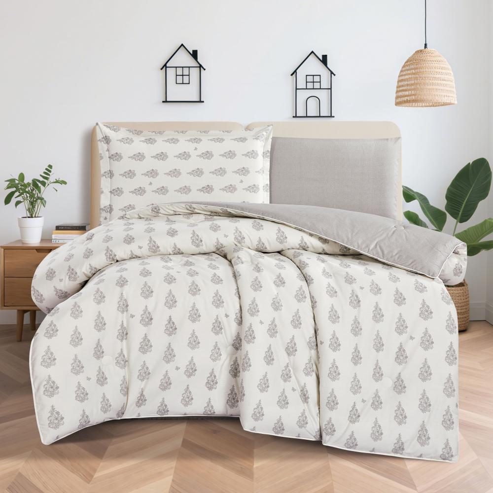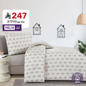 مفرش قطن صيفي مفرد ونص ٤ قطع - نولين - كريمي - رمادي