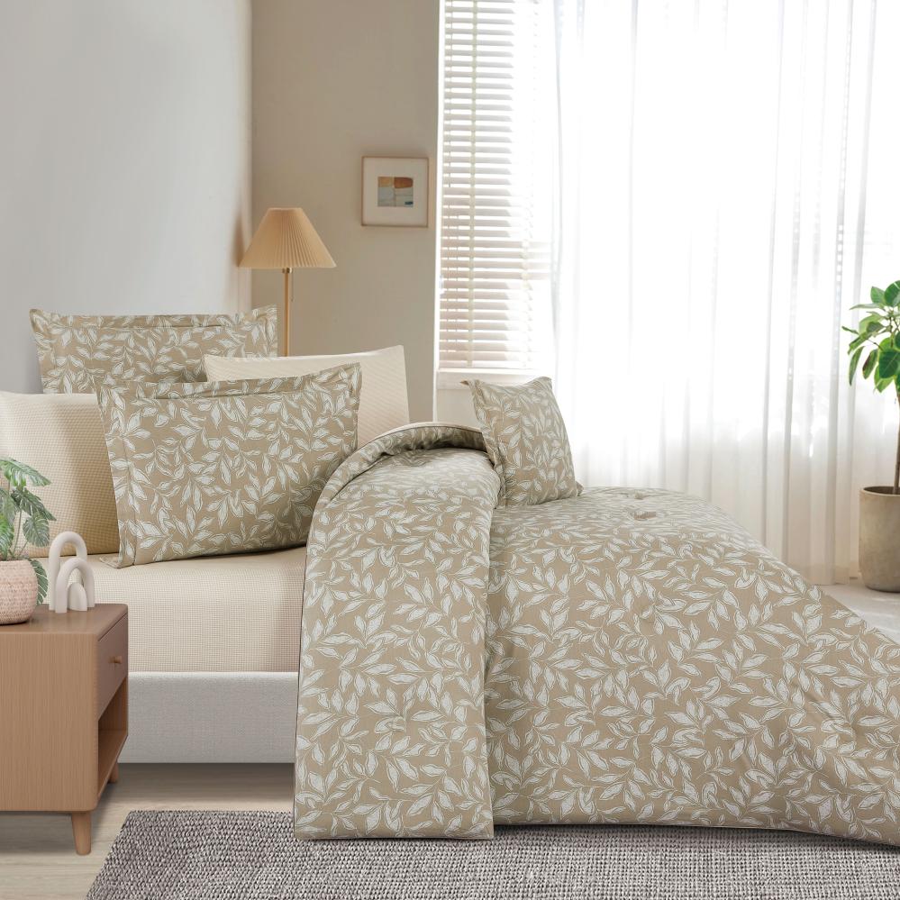 مفرش قطن صيفي مزدوج 8 قطع - زافيرا - زيتي - بيج
