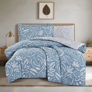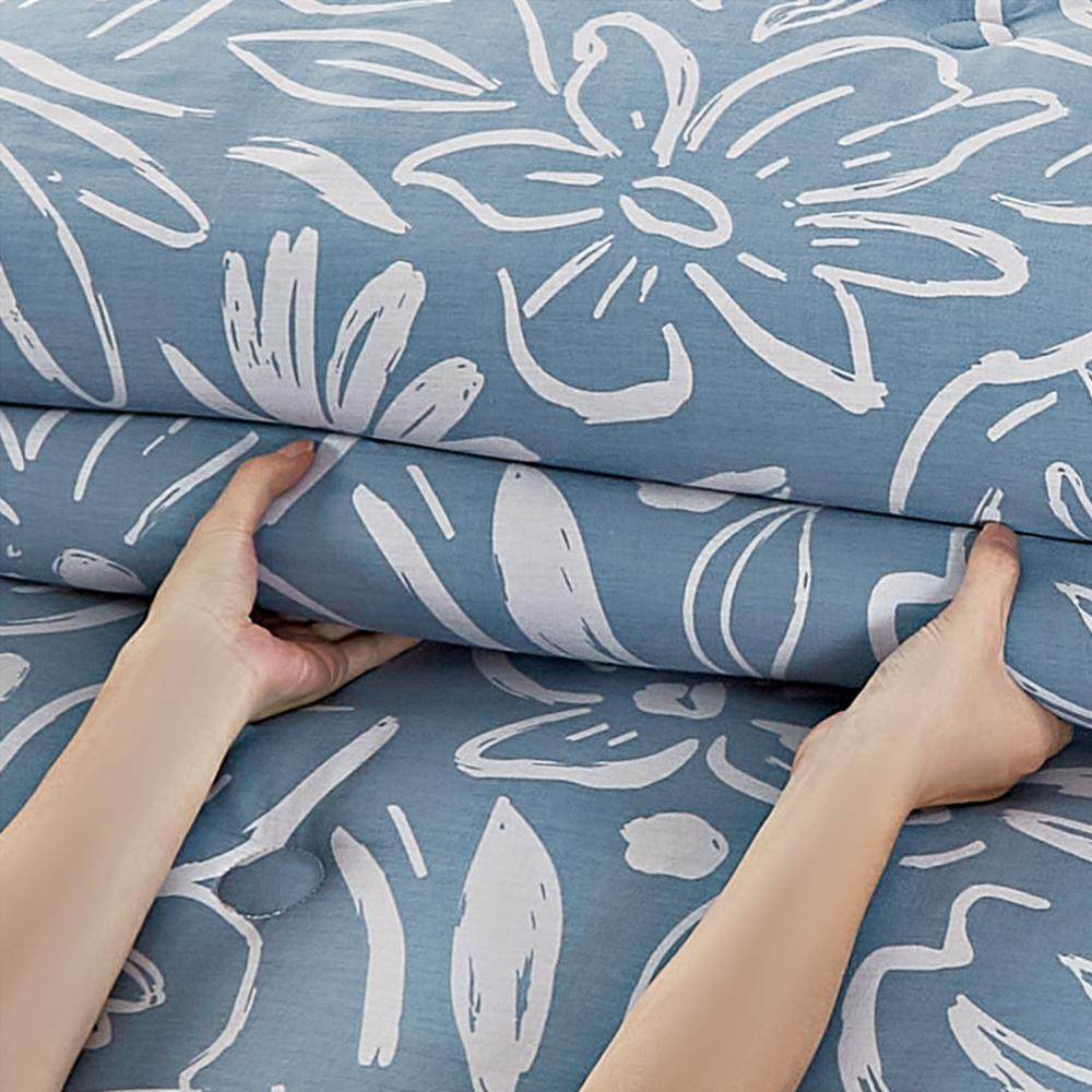 مفرش قطن صيفي مفرد ونص ٤ قطع - فاليريا - ازرق فاتح - رصاصي