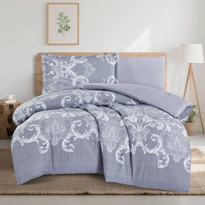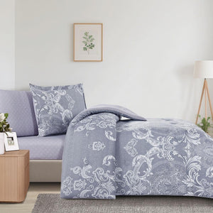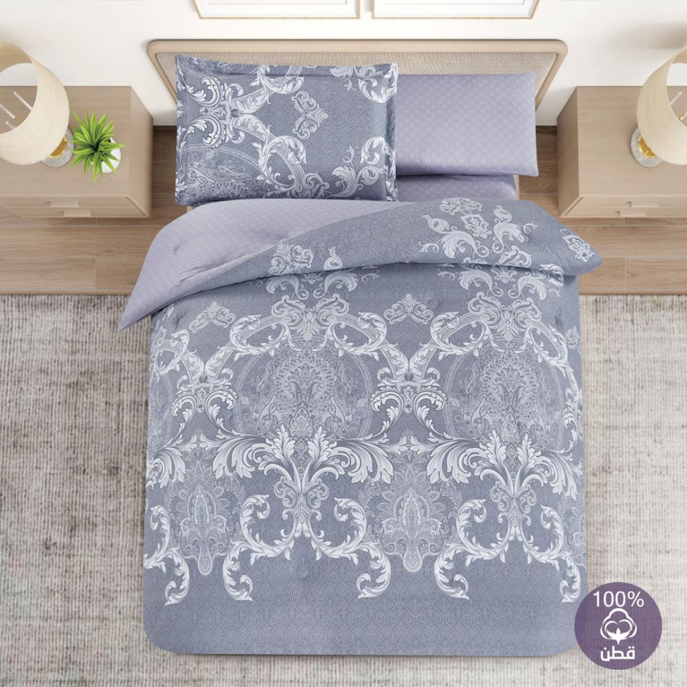 مفرش قطن صيفي مفرد ونص ٤ قطع - فاليريا - رمادي - بنفسجي