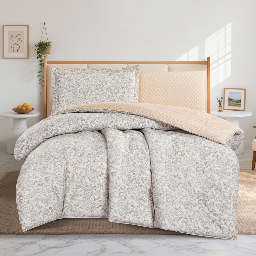 مفرش قطن صيفي مفرد ونص ٤ قطع - نولين -اوف وايت - بيج