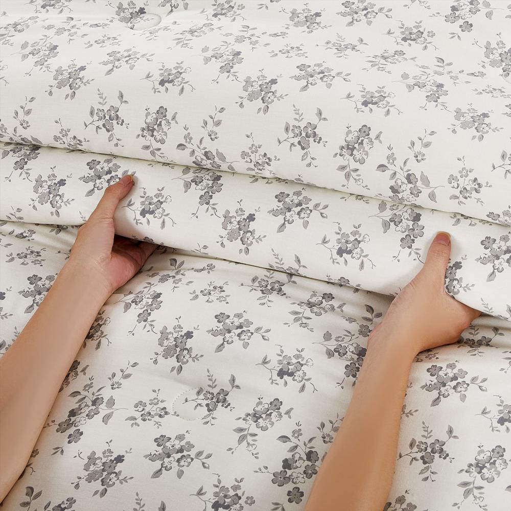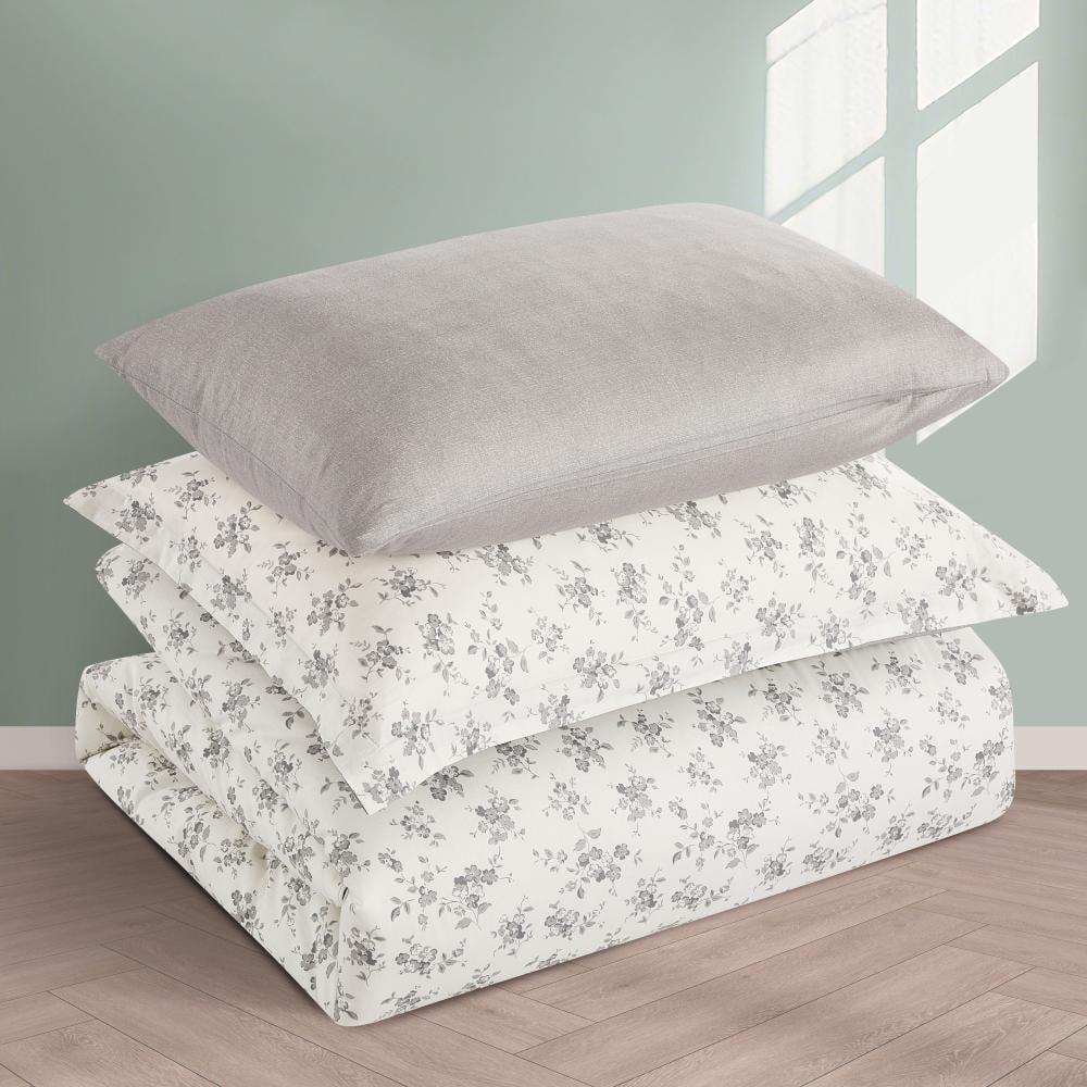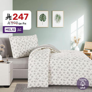 مفرش قطن صيفي مفرد ونص ٤ قطع - نولين -اوف وايت - رصاصي