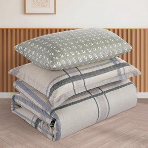مفرش قطن صيفي مفرد ونص ٤ قطع - نولين -بيج - رمادي فاتح