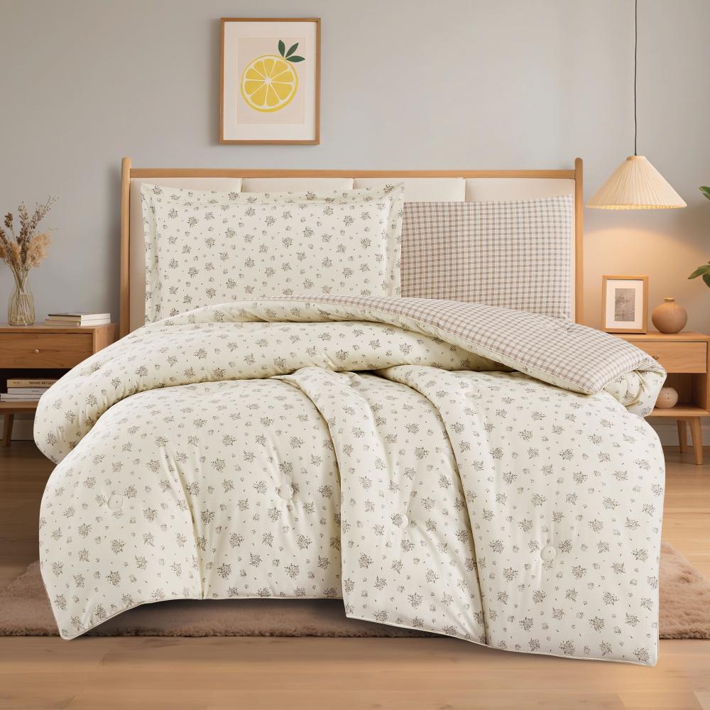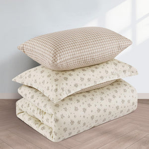 مفرش قطن صيفي مفرد ونص ٤ قطع - نولين - بيج فاتح - بيج غامق