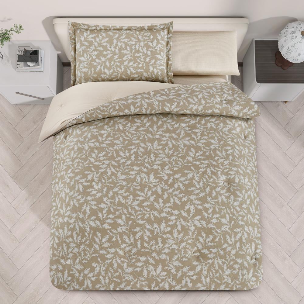 مفرش قطن صيفي مفرد ونص ٤ قطع - نولين -زيتي - بيج