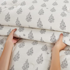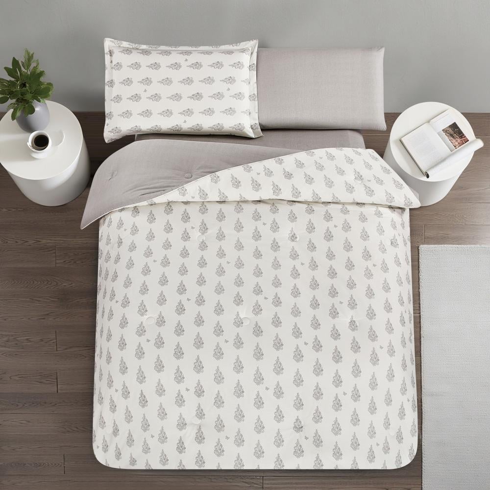 مفرش قطن صيفي مفرد ونص ٤ قطع - نولين - كريمي - رمادي