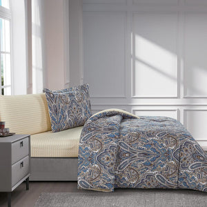 مفرش قطن  صيفي مفرد ونص 4 قطع - فاليريا - ازرق غامق - اصفر
