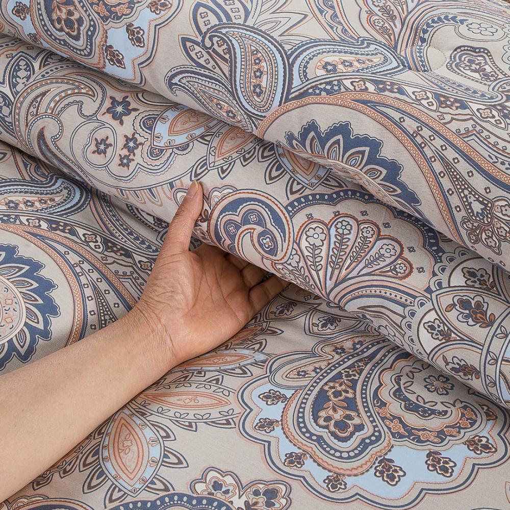 يأتي المفرش بتدرجات ألوان أنيقة تمنح الغرفة جوًا مريحًا ، مع حشوة مريحة تجعله مثالياً للاستخدام اليومي.