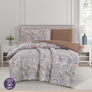 مفرش قطن صيفي مفرد ونص 4 قطع - فاليريا - بيج - بني