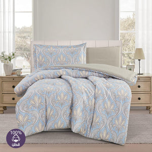 مفرش قطن صيفي مفرد ونص 4 قطع - فاليريا - سماوي - بيج غامق