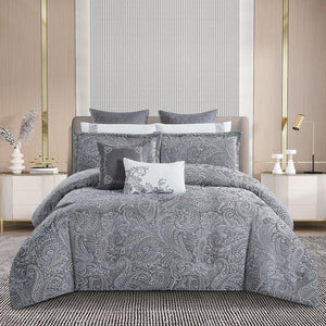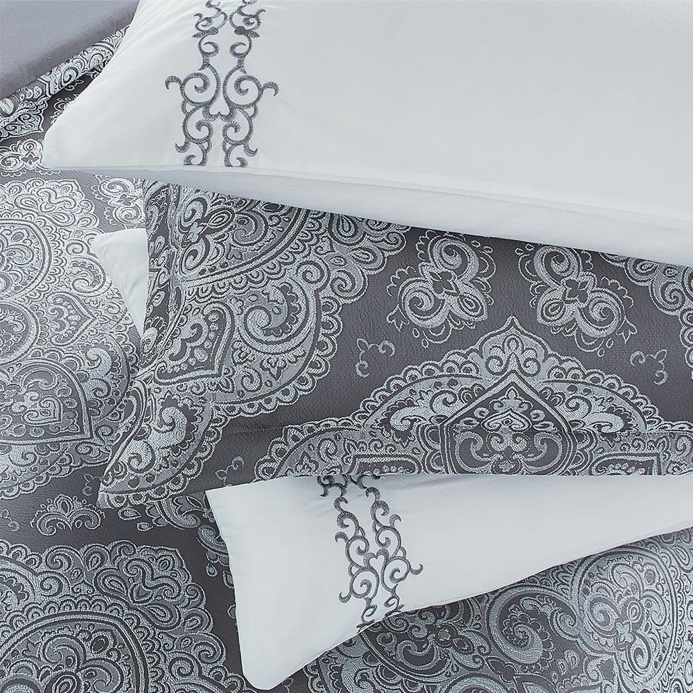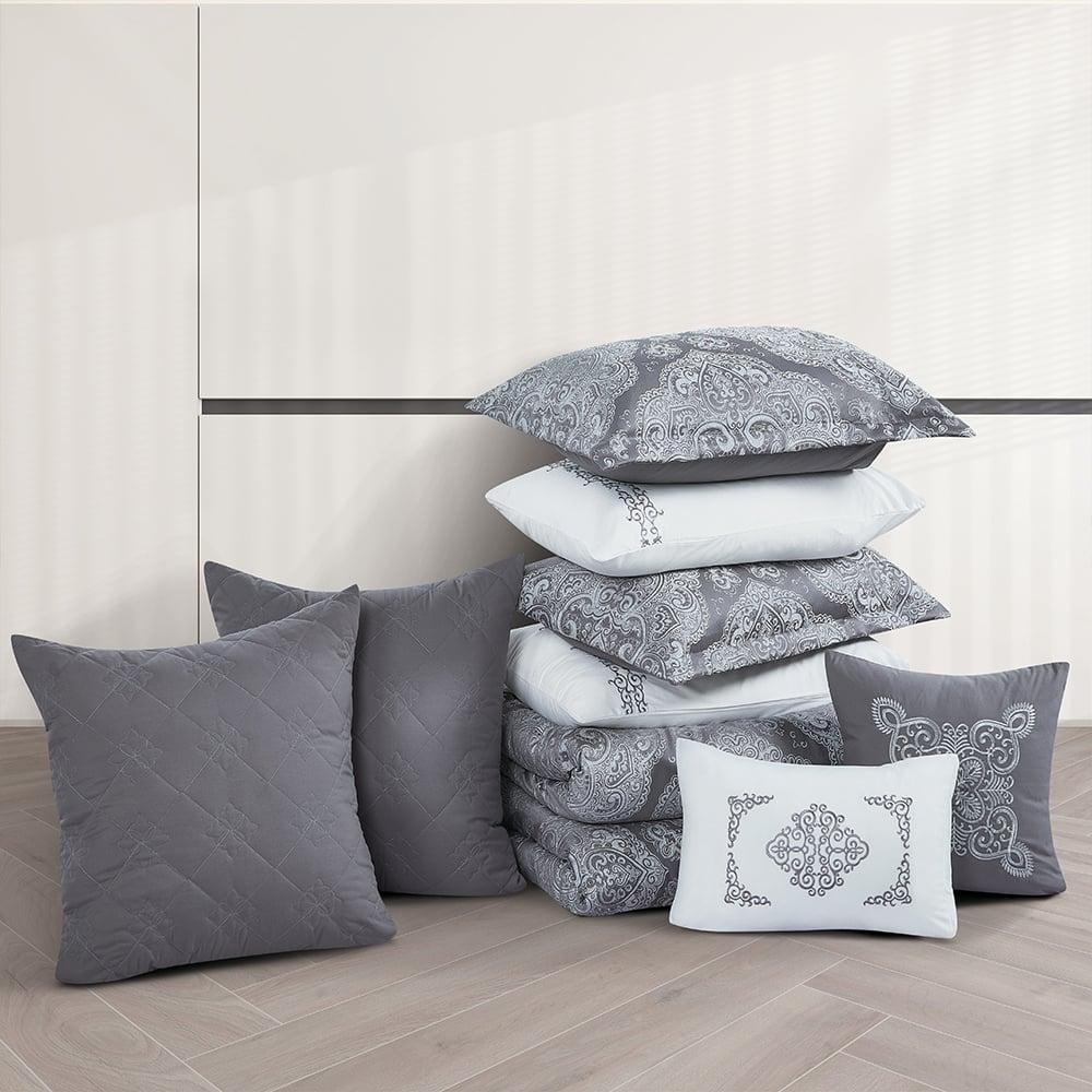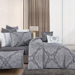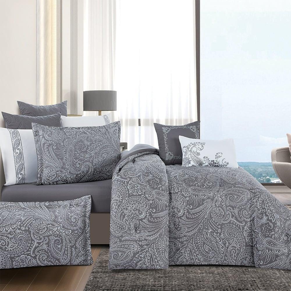 مفرش صيفي فاخر كوين جاكار مطرز 8 قطع – أورليا Aurelia – رمادي غامق