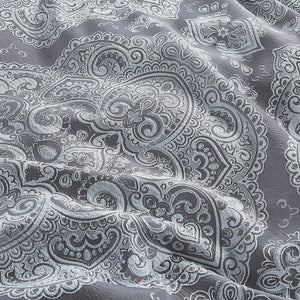 تم تصميم هذا المفرش من قماش الجاكار الفاخر بنقشة منسوجة بتصميم كلاسيكي هندسي، يجمع بين تفاصيل الروكوكو الفاخرة وتماثل زخرفي مستوحى من القصورالإيطالية تضفي طابعًا كلاسيكيًا دافئًا على غرفة نومك مع التطريز البارز اللذي يعطيك شعور الفخامة الملكية.