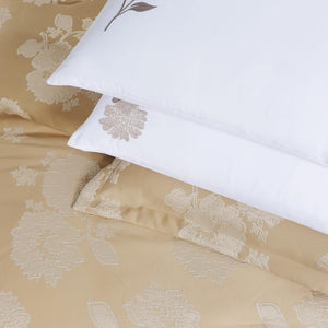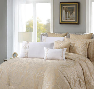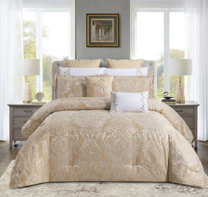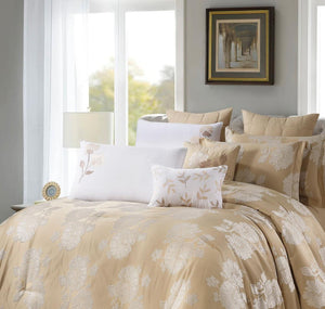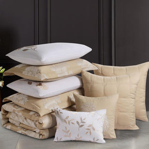 مفرش صيفي فاخر مزدوج جاكار مطرز 12 قطعة – كاسيانا - بيج فاتح