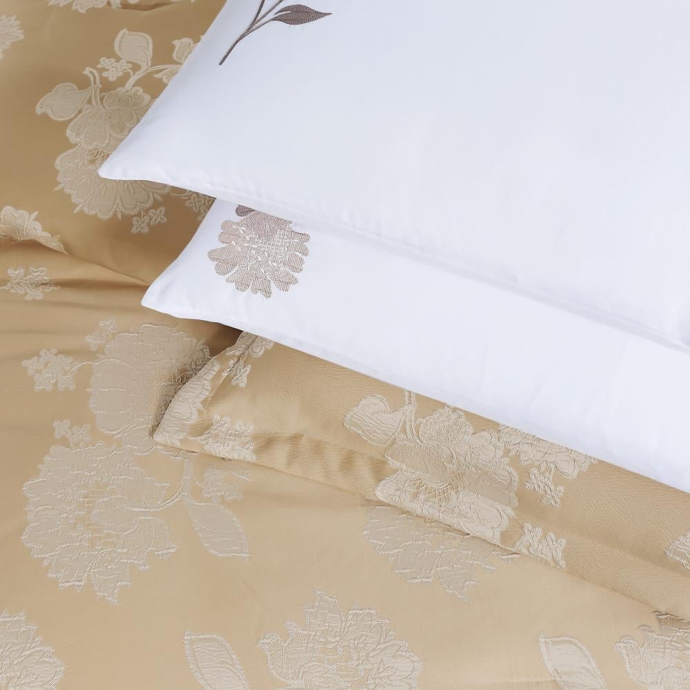 دع سحر التفاصيل ينطق في غرفة نومك مع مفرش "كاسيانا" الفاخر من ميلين — قطعة فنية مستوحاة من الزخارف الإمبراطورية الإيطالية، حيث تتلاقى الأناقة الكلاسيكية مع الراحة المعاصرة.