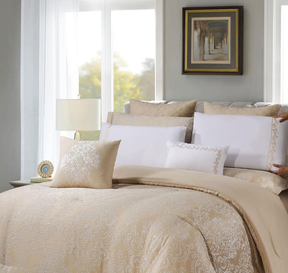 مفرش صيفي فاخر مزدوج جاكار مطرز 12 قطعة – كاسيانا - لون بيج