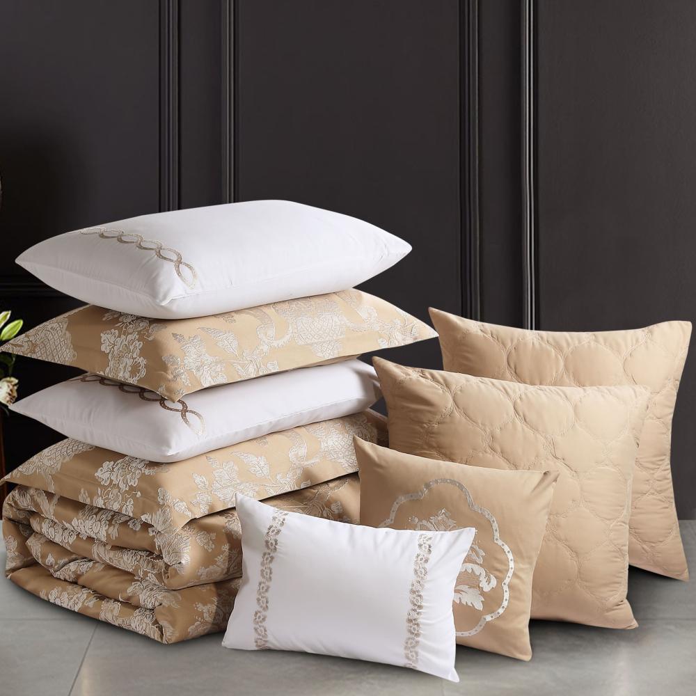 مفرش صيفي فاخر مزدوج جاكار مطرز 12 قطعة – كاسيانا - لون بيج غامق