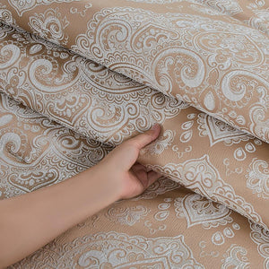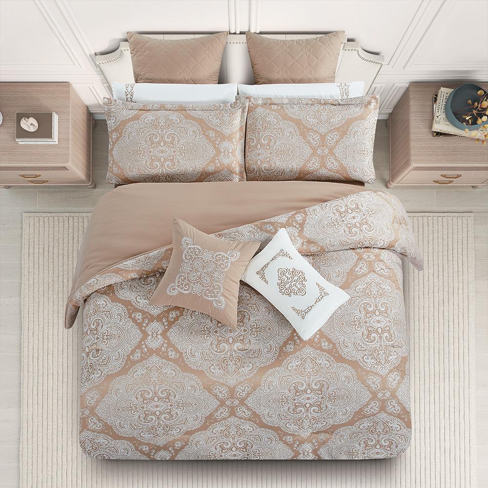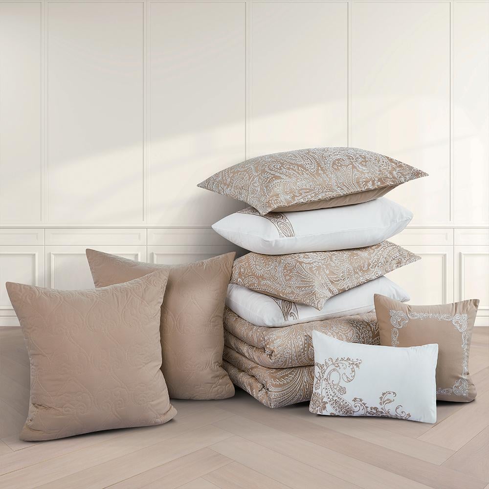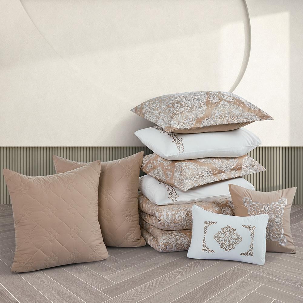 مفرش صيفي فاخر مزدوج جاكار مطرز 12 قطعة – لوتشيني Lucini– بيج غامق