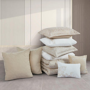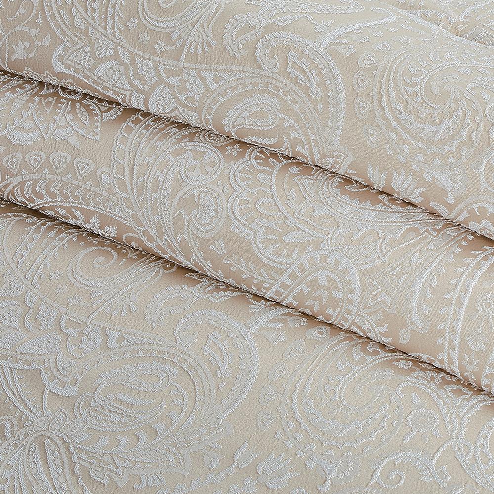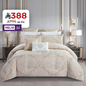 تم تصميم هذا المفرش من قماش الجاكار الفاخر بنقشة منسوجة بتصميم كلاسيكي هندسي، يجمع بين تفاصيل الروكوكو الفاخرة وتماثل زخرفي مستوحى من القصور الإيطالية تضفي طابعًا كلاسيكيًا دافئًا على غرفة نومك مع التطريز البارز اللذي يعطيك شعور الفخامة الملكية.