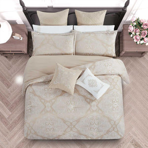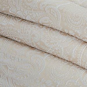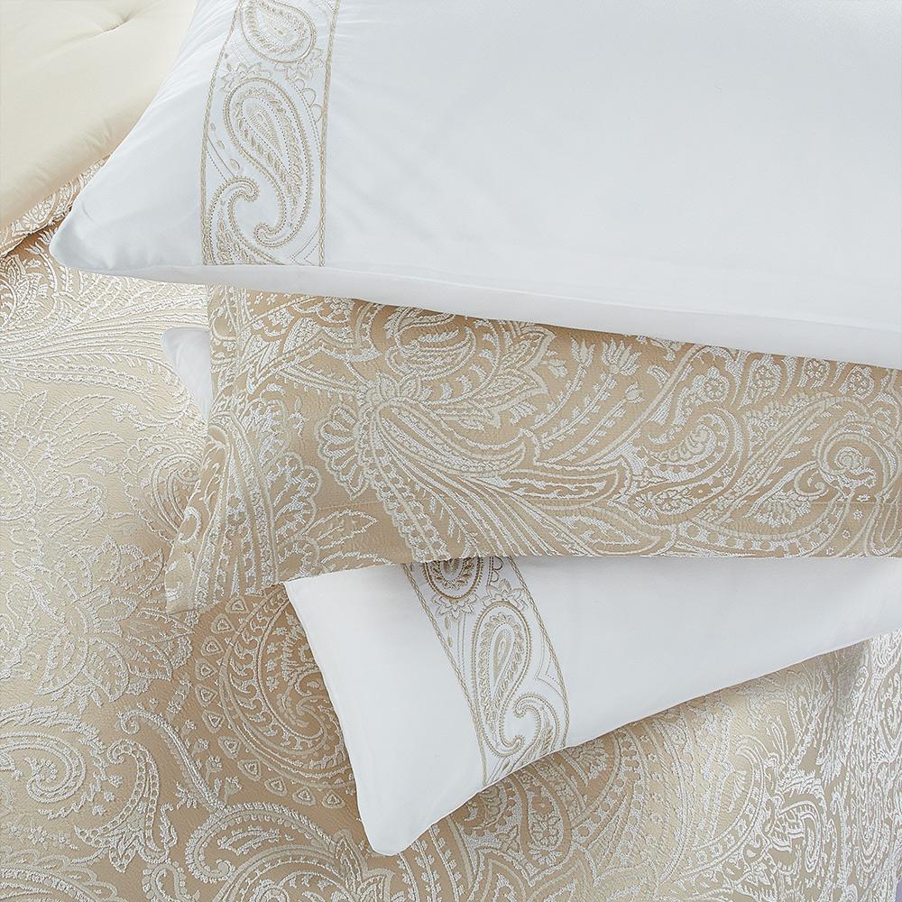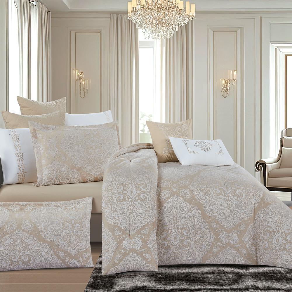 مفرش صيفي فاخر مزدوج جاكار مطرز 12 قطعة – لوتشيني Lucini– بيج فاتح